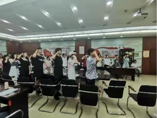 接下来,成员们围绕应如何“为群众做实事”展开讨论总结,并由刘星宇同学带领签署责任状。