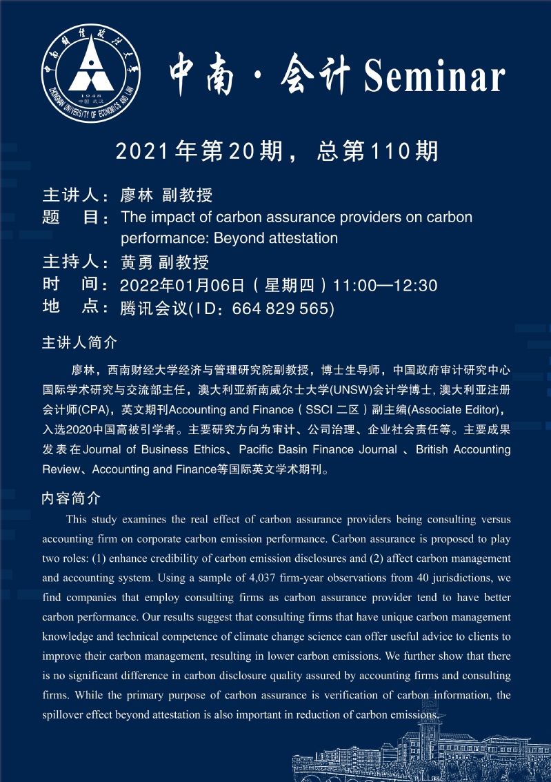 中南·会计Seminar第110期