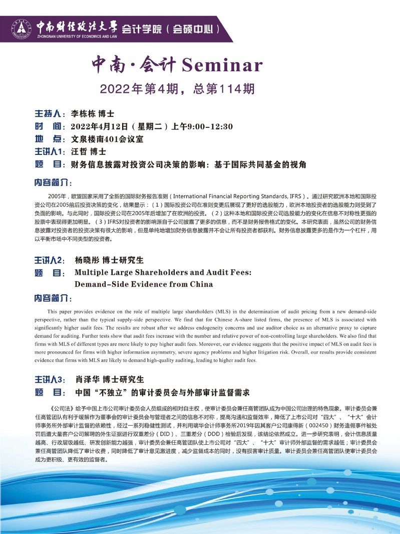 中南·会计Seminar第114期