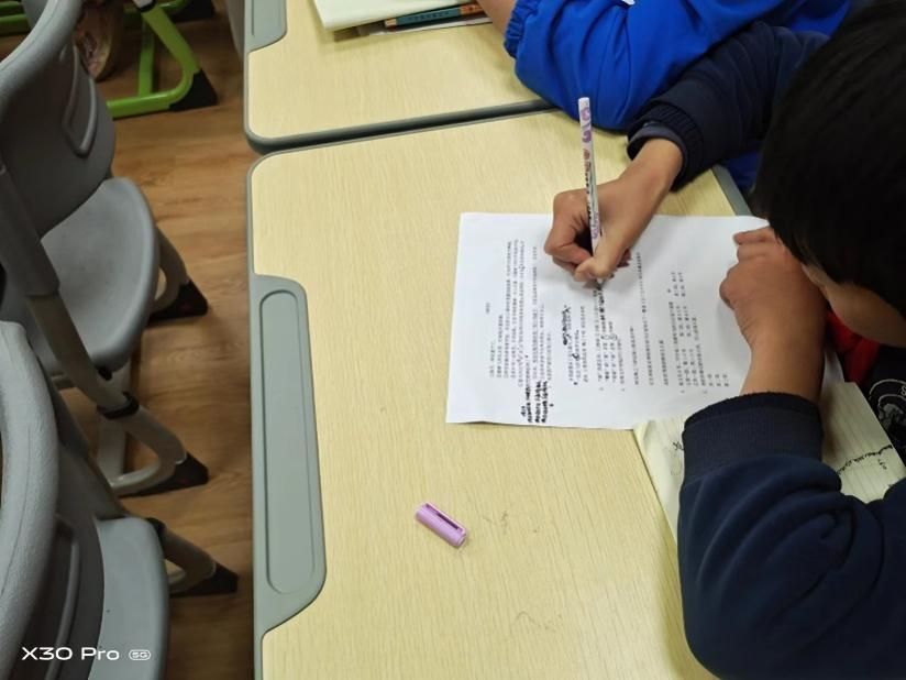 句子的缩写以及段落大意由则由吉轩仪同志进行教学。她同样以《桃花》中的一句话引入,帮助同学们总结了在缩写句子时常用的方法,并通过例题当场检验了同学们的学习成果。在归纳段落大意部分,吉轩仪同志教导同学们要在不改变意思的条件下,用尽可能精炼的语言实现句子的简写。两位同志在教学过程中认真严肃,注重与同学们的互动,课堂气氛活跃有序。