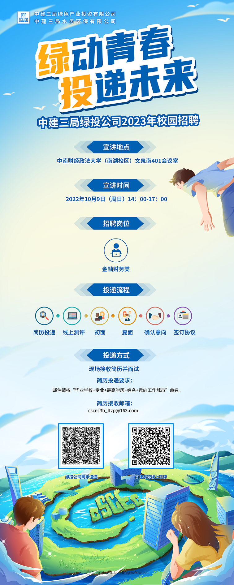【招聘公告】中建三局绿投公司2023年校园招聘