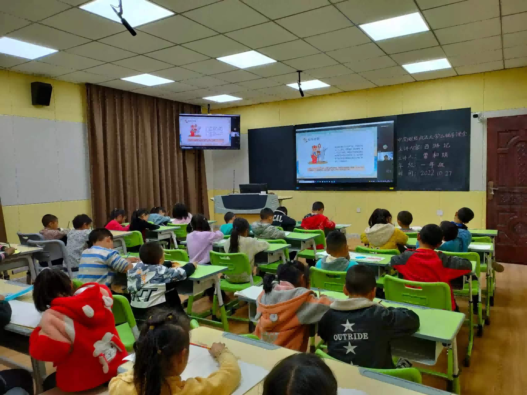 (通讯员 刘诗悦)2022年10月27日下午,通过腾讯会议平台,会计学院学生党员志愿服务团成员为云南省盐津县箭坝小学一年级师生开展以“西游记”为主题的“云课堂”教学活动,旨在帮助学生了解四大名著中《西游记》的相关内容,培养学生的阅读兴趣,引导学生认识了解并传承中国传统文化。此次课程由雷和娟主讲,箭坝小学一年级全体学生参加了本次活动。