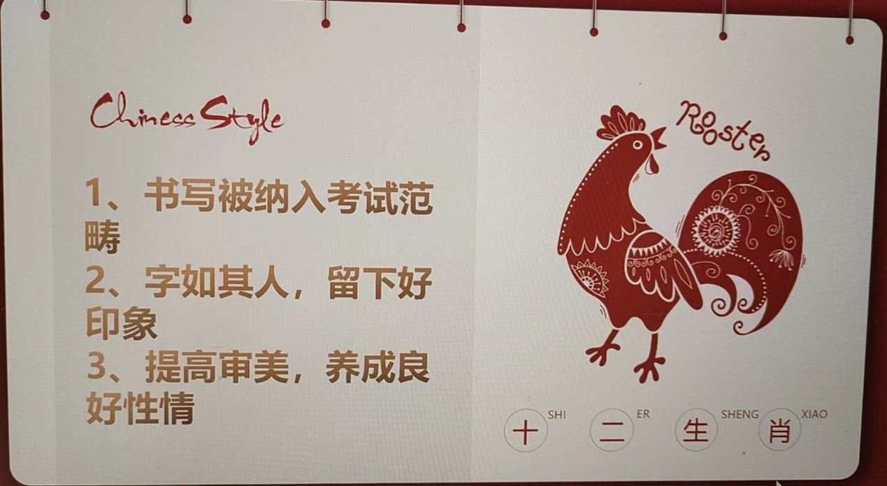 课程开始,樊惠燕同志首先通过生动形象的剪纸画图片,向同学们介绍了十二生肖的由来和传说故事,激发了同学们浓厚的兴趣。紧接着,樊惠燕同志依次讲解了十二生肖动物的具体象征和含义,同学们纷纷点头,不仅加深了对十二生肖动物的了解,而且促使同学们积极思考,认真回答老师的问题。