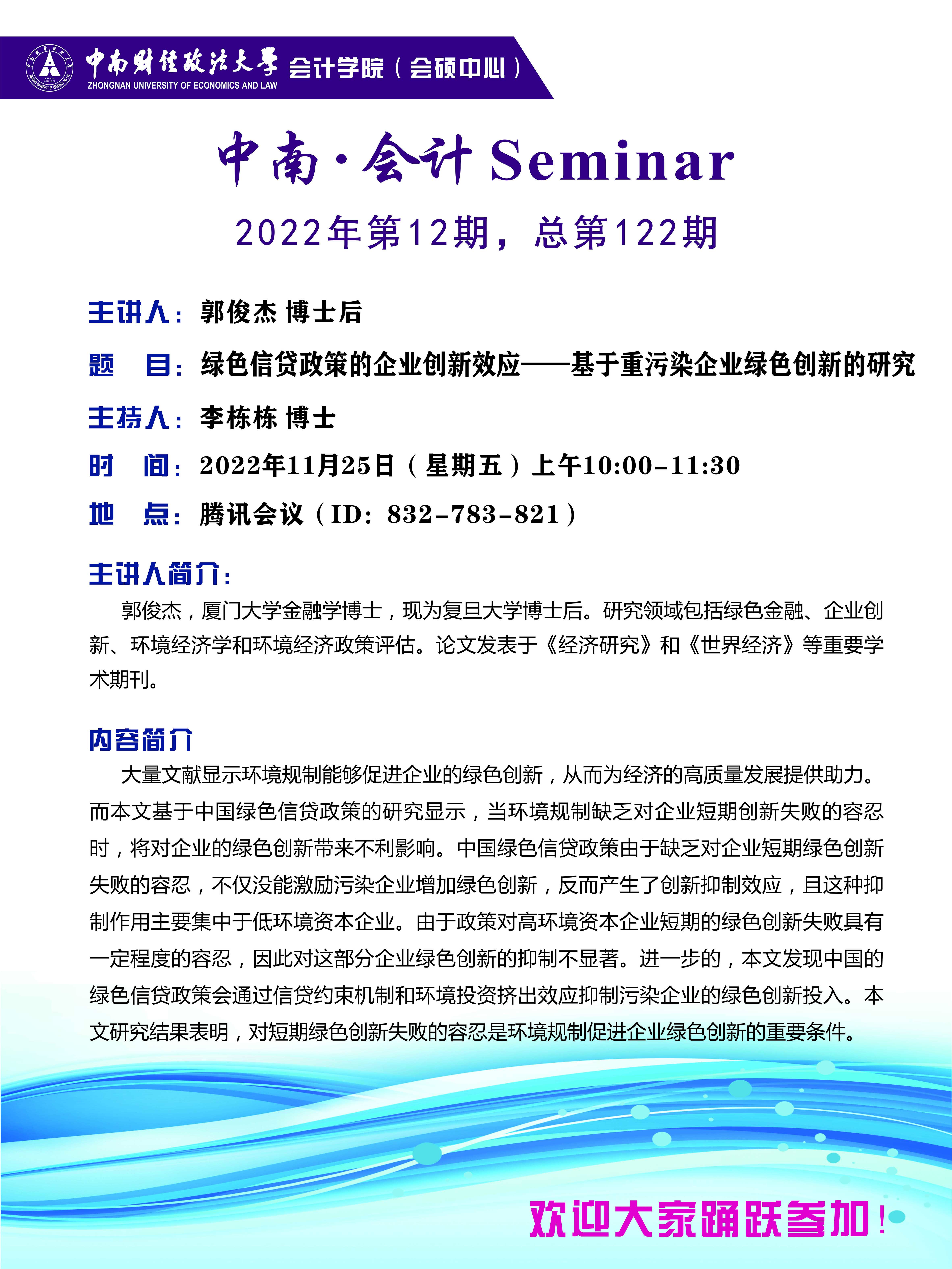 中南·会计Seminar第122期