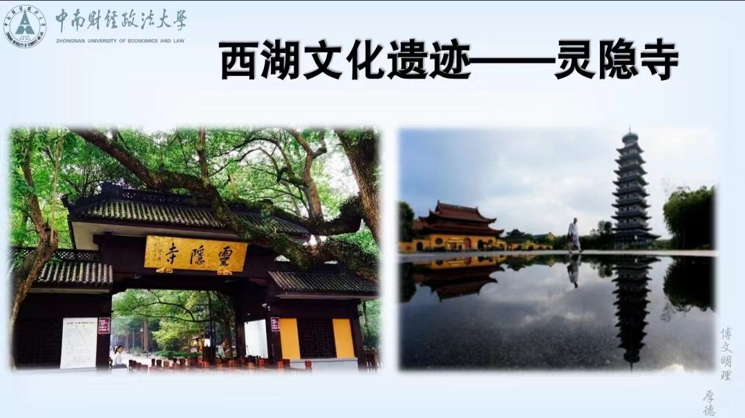 “毕竟西湖六月中,风光不与四时同。 接天莲叶无穷碧,映日荷花别样红。 紧接着,卢若渝老师以宋代诗人杨万里的《晓出净慈寺送林子方》把同学们的视角带到了西湖河畔。着重给同学们讲解了西湖的地址、文化遗迹断桥和文化遗迹灵隐寺。课堂上,同学们认真好学,求知若渴,相信在卢若渝老师的带领下同学们对于西湖的认识又有了一个更全面的认识。