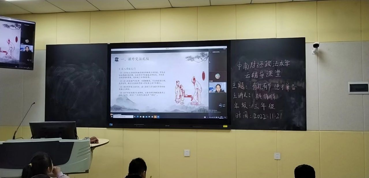 (通讯员 吴彤)2022年11月21日下午,通过腾讯会议平台,会计学院学生党员志愿服务团成员为云南省盐津县箭坝小学三年级师生开展以“有礼有节,德才兼备”的“云课堂”教学活动,旨在向同学们普及一些中小学生礼仪知识。此次课程由志愿者姚俏俏主讲,箭坝小学校长李勇、三年级班主任罗华老师及三年级全体学生参加了本次活动。