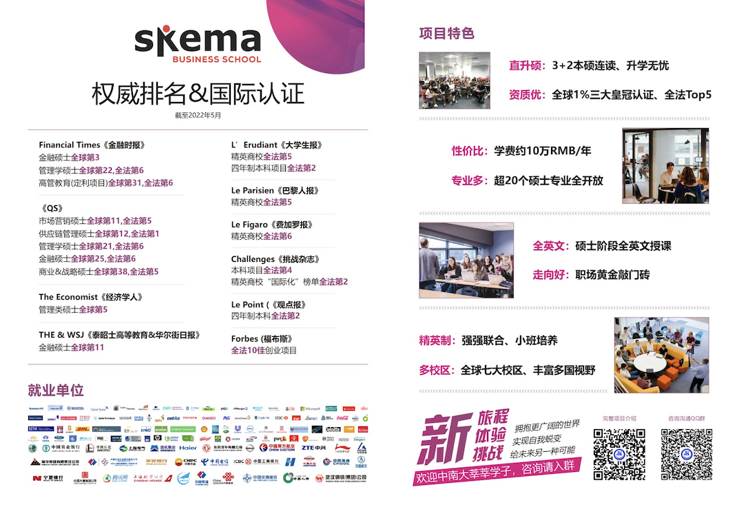 会计学院财务管理——CIMA方向(中南大——SKEMA商学院)3+2本硕连读国际联合培养项目