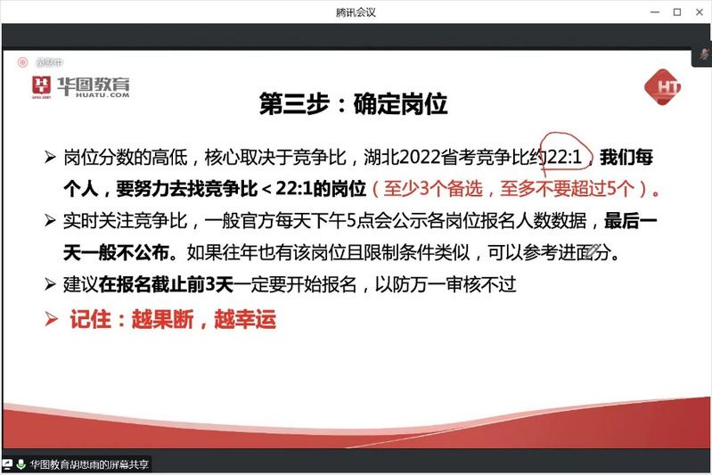 在确定岗位时,老师建议大家先备选三到五个岗位,竞争比小于22:1为佳,同时关注实时的竞争比,最后做出果断的选择。