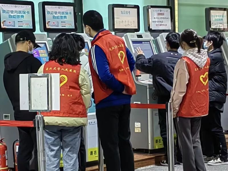 滴滴滴~“您好,您的检查报告已打印好,请收好”春日的阳光穿过层层树荫,照在武汉大学人民医院自助设备服务区门前,“白鸽”服务队的志愿者们身着红色小马甲,守候在一台台自助服务机旁,协助来往患者挂号、打印。我们或许无法直接减免他们的苦痛,但悉心的帮助,必定能在他们求医过程中留下些许暖意,陌生的陪伴也能带来许多的慰藉。快来化身青年志愿者,和我们一起传递温暖吧!