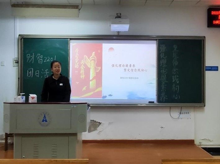 活动第一项,团支书林涵进行微团课讲授,引导团员们思悟党的决策智慧,鼓励全体团员踔厉奋发、挺膺担当。团支书讲解党的两会精神,强调要坚持以习近平新时代中国特色社会主义思想为指导,把学习贯彻两会精神与学习贯彻习近平总书记关于教育的重要论述和党的二十大精神结合起来,深刻领悟“两个确立”的决定性意义,增强“四个意识”、坚定“四个自信”、做到“两个维护”,增强政治责任感和历史使命感,切实把两会精神落到实处。
