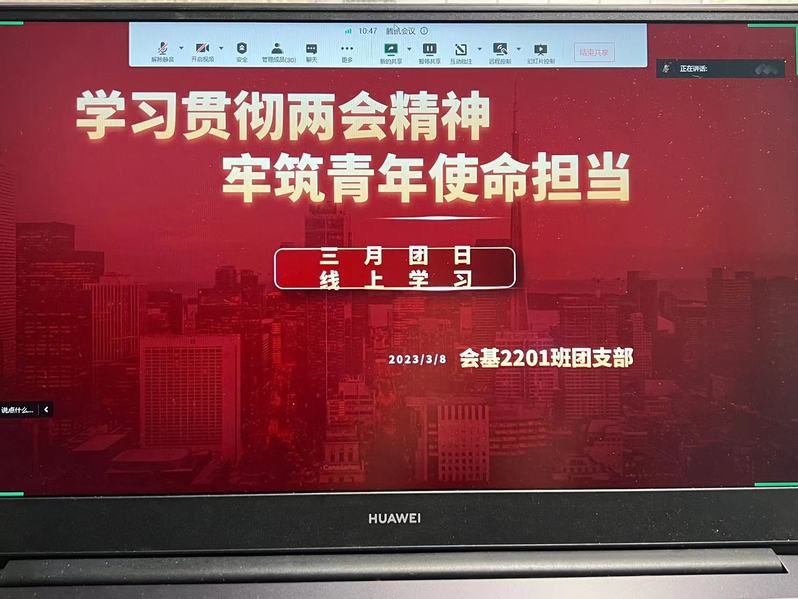活动第一项,线上观看全国两会。支部团员学习两会精神与二十届二中全会公报,体悟精神内涵。在“青”听两会的环节,青年楷模的事迹深深打动着团员们,激发我支部青年团员勇于担当的奉献力量。最后,宣传委员组织商议班徽班旗的设计,全体成员热烈讨论,献计献策,支部凝聚力大大增强。