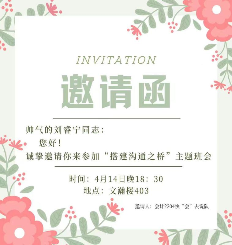 至此,本次班会便圆满结束了。在本次班会活动中,同学们展现出了极大的热情与积极性,在放松自我的同时学习达成有效沟通的有关知识,充分将理论与实践结合。快“会”去说团队以认真热情的态度,尽心尽力为同学们设计出学习意义与趣味性高度融合的班会,打造信息量足、接地气的体验。团队所策划召开的心理班会也得到了班级同学的一致好评。团队成员也在班会结束后对班会进行总结与反思,致力于给同学们带来更多有趣充实的体验,为同学们提供一个更有意义、更有价值、更加互动、更加紧密的班级学习和交流平台。