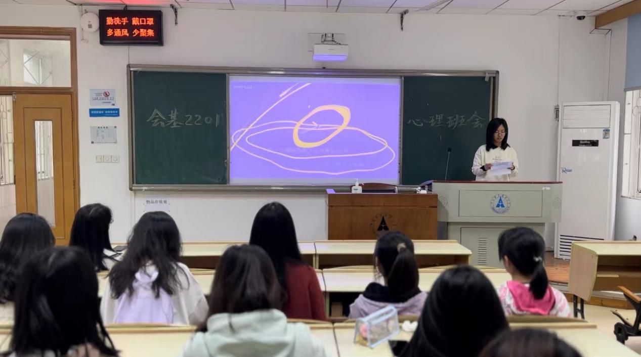 会基2201班聚焦“从今天开始睡个好觉——睡眠的管理”,以问卷形式了解班级同学睡眠状况,在会上指出失眠的类型及解决办法,一起动手制作了香薰,同时播放舒缓的音乐。会计2202班介绍了处理负面情绪的方法,并在班会尾声送出“希望你们成功,更希望你们幸福和快乐”的祝福。“心理韧性”是会计2203班此次心理班会的关键词,班会以心理韧性介绍、互动游戏、提升心理韧性的建议三个环节展开,最后还给同学们推荐了有关书籍,帮助同学们养成在课外也主动学习心理知识的好习惯。会计2205班以“赏星星之微光”为主题,“认识自我,悦纳自我”为中心,鲜花DIY签到、破冰小游戏、情景案例分析、治愈短片欣赏、心理知识讲解、齐诵诗歌《欣赏自我》、解忧便利贴、冥想练习等环节让同学们沉浸式理解与体会到认识自我与悦纳自我的重要性并学习到具有可行性与实用性的心理知识。