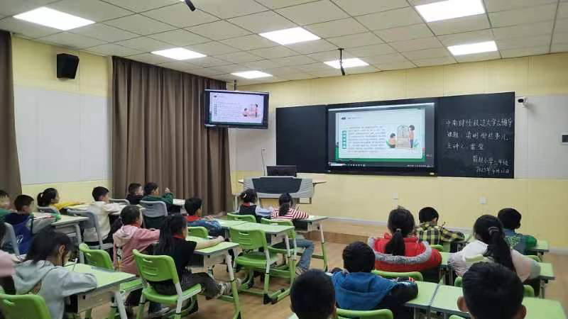 课程开始,雷莹同学以一个互动性较强的问题引出了本次课程的主题,小同学们积极参与,课堂气氛生动活跃。随后,雷莹同学展示了古诗《清明》并对其写作背景、内容做了简要介绍。在该过程中与同学们进行了良好的互动,调动了同学们对本次课程的兴趣。