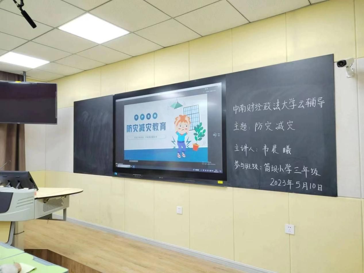 (通讯员 陈欣儿)2023年5月10日星期三下午,通过腾讯会议平台,会计学院学生党员志愿服务团成员为云南省箭坝小学三年级师生开展以“防灾减灾”为主题的“云课堂”教学活动,旨在通过生动的课堂教学活动深化同学们对防灾减灾、抗灾救灾的认识,进而培养同学们的安全防护意识,促进同学们科学素质提高。此次课程由韦晨曦主讲,箭坝小学三年级全体同学参加了本次云课堂活动。