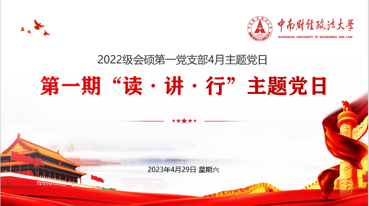 2023年4月29日中午,会计学院2022级会硕第一党支部开展了第一期“读·讲·行”主题党日活动。本次活动由支部副书记田伟濠主持,会硕第一党支部全体党员同志参加了此次活动。