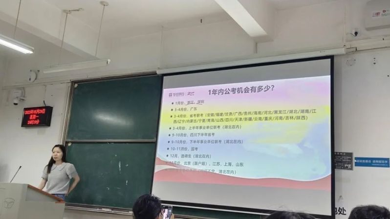 本次活动邀请华图教育资深教师李雪莲老师进行讲授,老师从公务员介绍、考情介绍、备考技巧三部分展开介绍。李老师对编制进行介绍,从报考的流程上梳理了整个公考过程,讲解了同学们每年拥有的报考机会,并按照时间顺序帮助同学明晰1年内的公考机会,包含国考、省考、联考等,也提到选调生、企事业单位的选拔时间及方式,提醒同学们留意各个时间点。