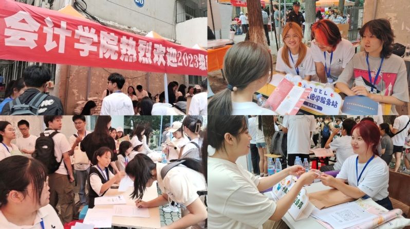 (学生通讯员 许铭凌 摄影 赵思瑶)“你好,新同学!”9月3日,会计学院党委书记周勇、副书记胡桂锬,代学办主任陈楠,团委书记赵达骋,23级本科辅导员徐乐、杨柳,以及53名迎新志愿者和30名团学骨干,在首义校区26号楼、33号楼迎接前来报到的399名本科新生。
