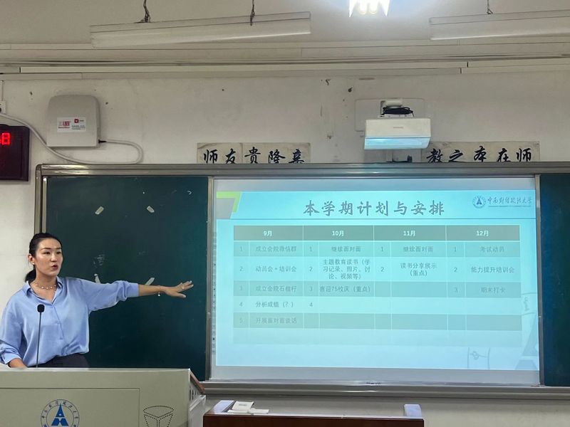 新闻网讯(学生通讯员 何静怡)9月14日,石榴籽学习小组素养能力扩展培训暨23-24学年动员大会于南湖校区文澜楼205教室举办。会计学院辅导员胡牧孜与金融学院少数民族专职辅导员莎吉丹姆出席本次大会。大会由妮尕主持。