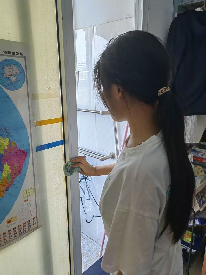这是来自505寝室的同学,她们分工合作,进行了最基础的地面卫生打扫,并将窗户、洗手池和卫生间逐一擦净,使尘封了一个暑假的寝室焕然一新。“有了良好整洁的生活环境,才会有好心情面对每一天的生活。”其中一位同学这样说。在此次活动中,寝室成员分工合作、相互配合,通过自己的辛勤劳动给了“家”一个更加整洁卫生的模样,在新学期添上一份别样的温暖。干净的地面、整齐的陈设,搭配上同学们自己对桌面的精心布置,这都展现了ACCA班学子们辛苦劳动的成果和积极向上的生活态度。