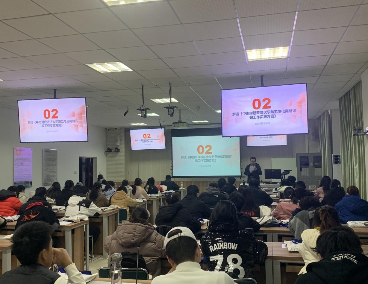 新闻网讯(通讯员 黎玥 蔡雨萱 摄影 王丽君)近年来,电信网络诈骗案高发,诈骗手段日新月异、防不胜防,当代大学生深受其害。为保障我院学生人身和财产安全,提高学生防诈骗意识,11月30日下午,会计学院组织开展了防诈骗动员大会,会计学院党委副书记胡桂锬、会计学院团委书记赵达骋、会计学院本科2022级辅导员黎玥和会计学院本科各年级学生骨干出席此次大会。万联证券湖北分公司专家受邀出席,并开展防范非法金融知识宣传讲座。