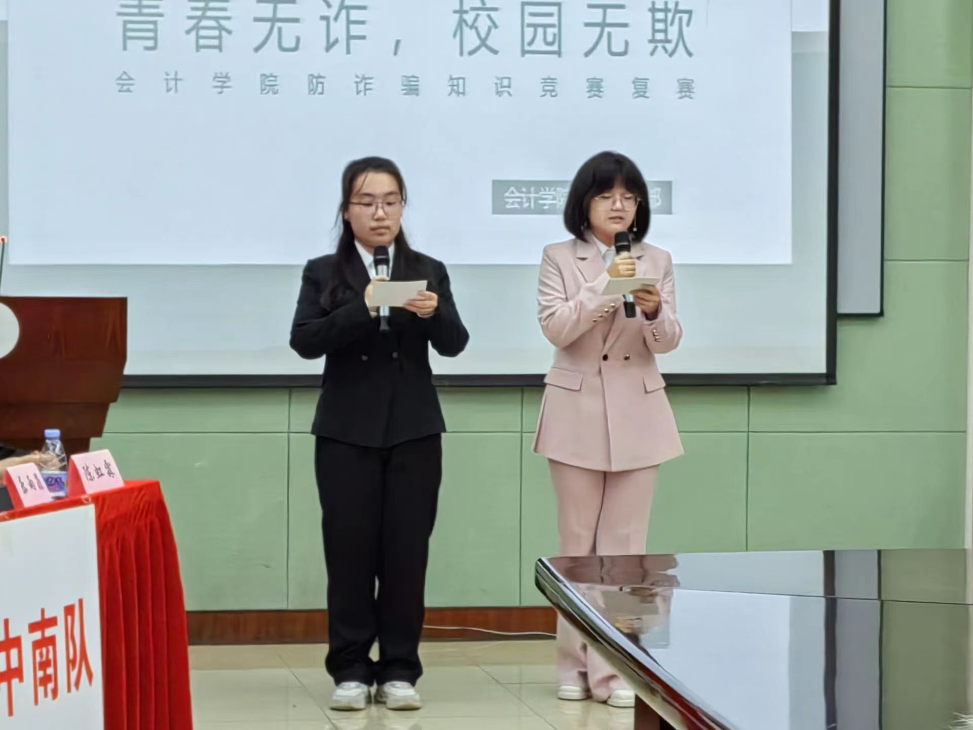 新闻网讯(通讯员:黎玥 徐阳阳 摄影:易芷璇)为提高会计学院学子防范电信网络诈骗的意识,增强对诈骗手段的识别能力,保障会计学院学生人身财产安全,12月10日晚18:30分,会计学院于文泉楼南401室开展了以“青春无诈,校园无欺”为主题的防诈骗知识竞赛决赛。会计学院党委副书记胡桂锬、团委书记赵达骋、本科2021级年级主任胡牧孜、2022级年级主任黎玥和2023级年级主任杨柳作为本次决赛的评委出席。