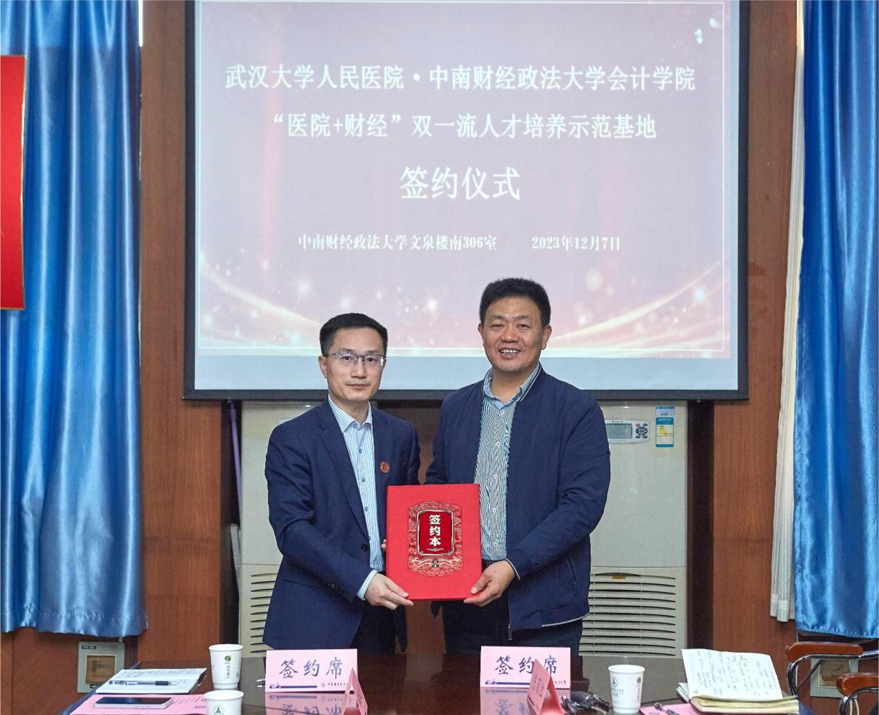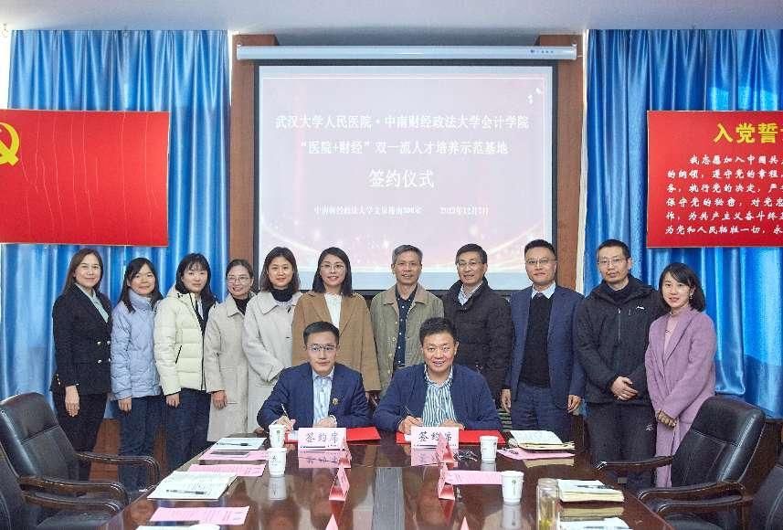 (通讯员 南欣怡 畅雅莉)2023年12月7日下午,会计学院与武汉大学人民医院“医院+财经”双一流人才培养示范基地签约仪式在文泉楼南306会议室成功举行。武汉大学人民医院总会计师何谦然,计财处负责人朱敏,计财处会计核算科主任龚旻,计财处财务管理科主任何娟,计财处会计核算科骨干向冰洁、文雄,会计学院院长张敦力,院党委书记周勇,副院长王昌锐,院党委副书记、纪委书记兼行政副院长徐会超,副院长陈丽红,院党委副书记胡桂锬,院党政办姚健、赵侃老师等出席签约仪式。签约仪式由徐会超主持。