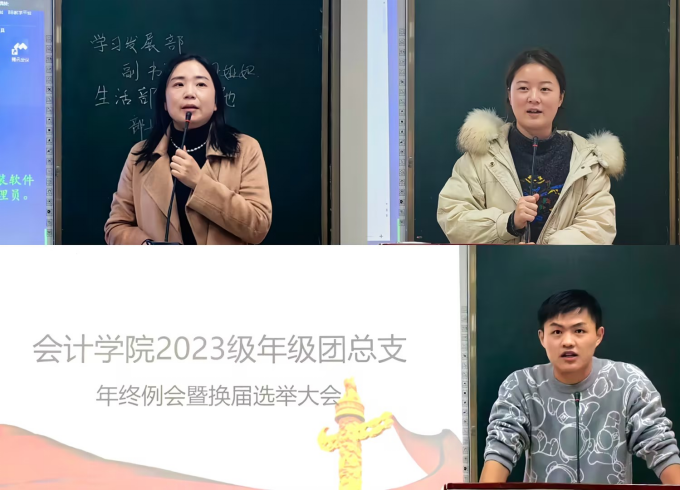 新闻网讯(学生通讯员 林家珍 李琦昱 明若钦 摄影 罗咏琳)2023年已接近尾声,为更好地掌握团总支的工作情况,规划未来发展蓝图,加强团总支的内部建设以提高团总支的战斗力和凝聚力,12月29日下午,会计学院于文润楼101教室召开了2023级年级团总支年终例会暨换届选举大会。会计学院辅导员陈楠、杨柳、徐乐和2023级年级团总支全体成员参与此次会议。