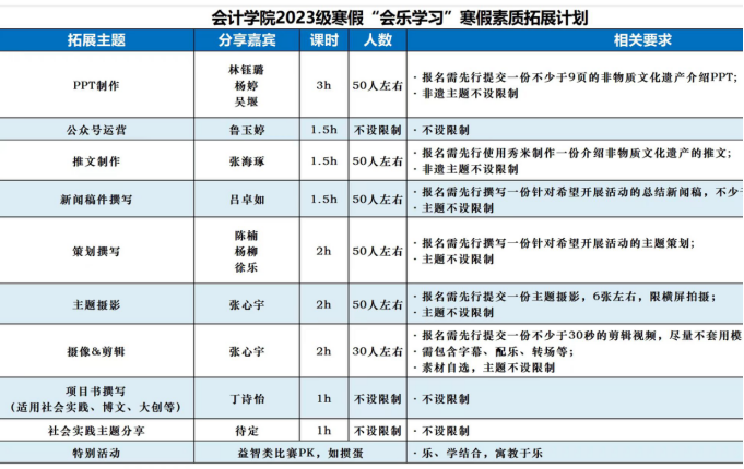 新闻网讯(学生通讯员 李琦昱 明若钦)为丰富学生假期生活、提高学生综合素质,1月23日至2月4日期间,院学习发展中心针对2023级本科生开展寒假“会乐学习”素质拓展活动。