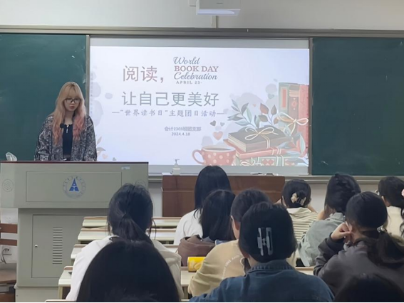 活动伊始,团支书陈柯屹以阅读相关的名言警句为切入点,带领同学们一同走进阅读世界。谈到“世界读书日”的历史由来时,团支书分享了一些名人轶事,成功吸引了同学们的注意。