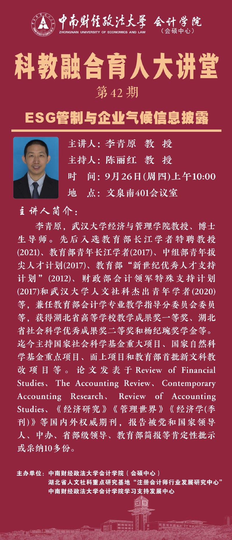 本次我们诚挚邀请武汉大学李青原教授作为主讲嘉宾,为我们带来第42期科教融合育人大讲堂。