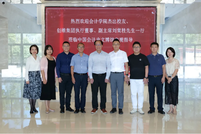 9月22日,创维集团有限公司董事会执行董事、副主席、中国电子视像协会会长、会计学院杰出校友刘棠枝先生一行返回母校,参观中国中国会计史文博馆,并举行宣讲招聘会暨“栋梁助学金”捐赠发放仪式。校党委副书记陈狮,就业指导服务中心、校友工作与社会合作部相关负责人及会计学院院长张琦、院党委副书记黄波等参加。