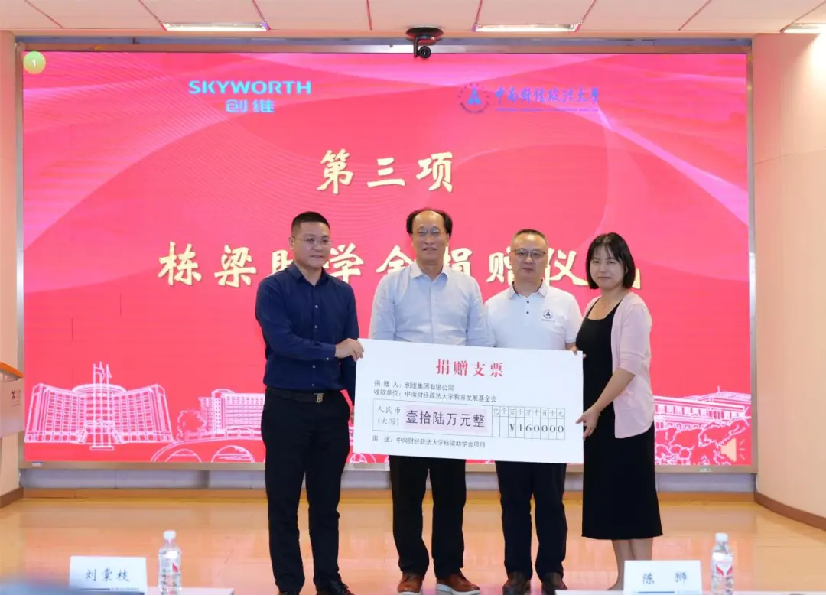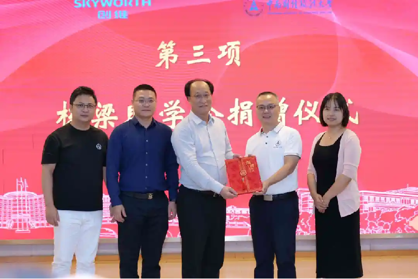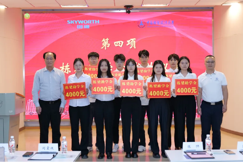 接着,创维集团人力资源部部长徐立代表创维集团向学校教育发展基金会赠送捐赠支票,陈狮代表学校向刘棠枝董事颁发捐赠证书。随后,双方为获得“栋梁助学金”的学生代表发放助学金。