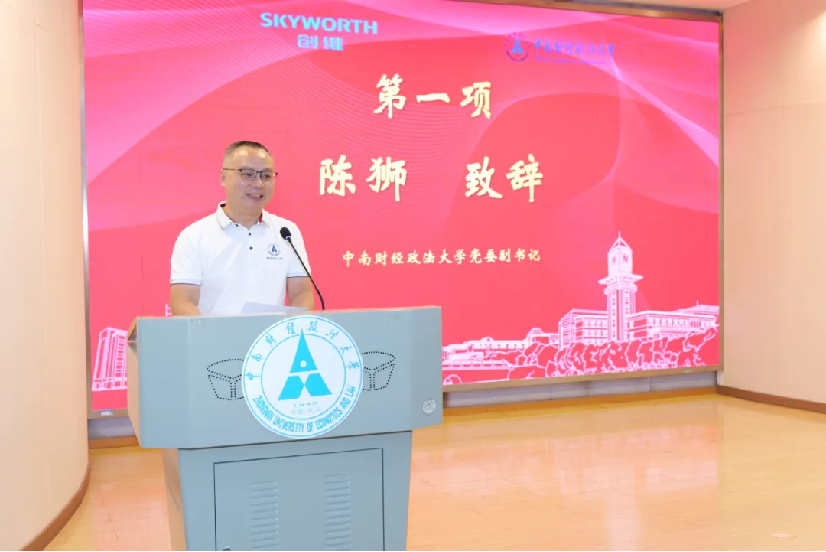 陈狮对校友刘棠枝董事一行的到来表示热烈欢迎,他介绍了近些年学校取得的新成绩。同时,对创维集团设立栋梁助学金和长期支持我校教育事业和关爱师生表示衷心感谢,希望以此次活动为契机,继续深化与创维集团的合作和交流。他寄语受助学生感恩所获,努力实现人生价值。