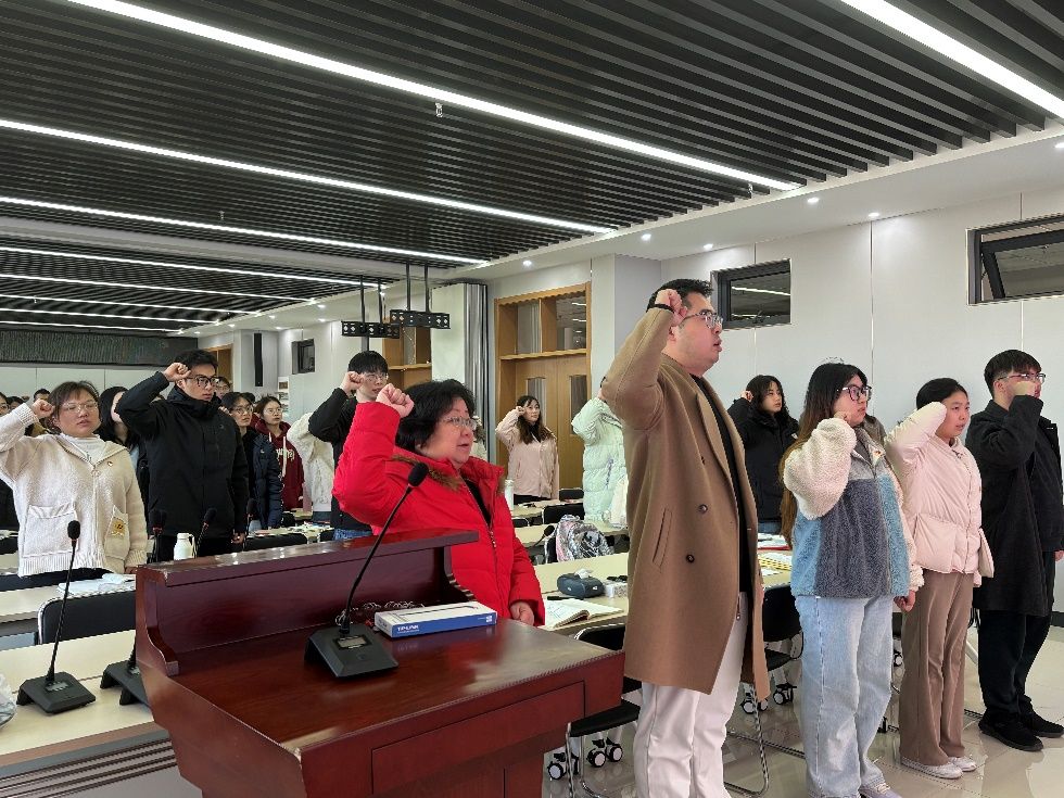 会议开始,会计学院本科生第三、第四党支部全体成员现场交纳党费,重温入党誓词,铭记入党初心,强化了每位党员不懈奋斗的使命感和责任感。