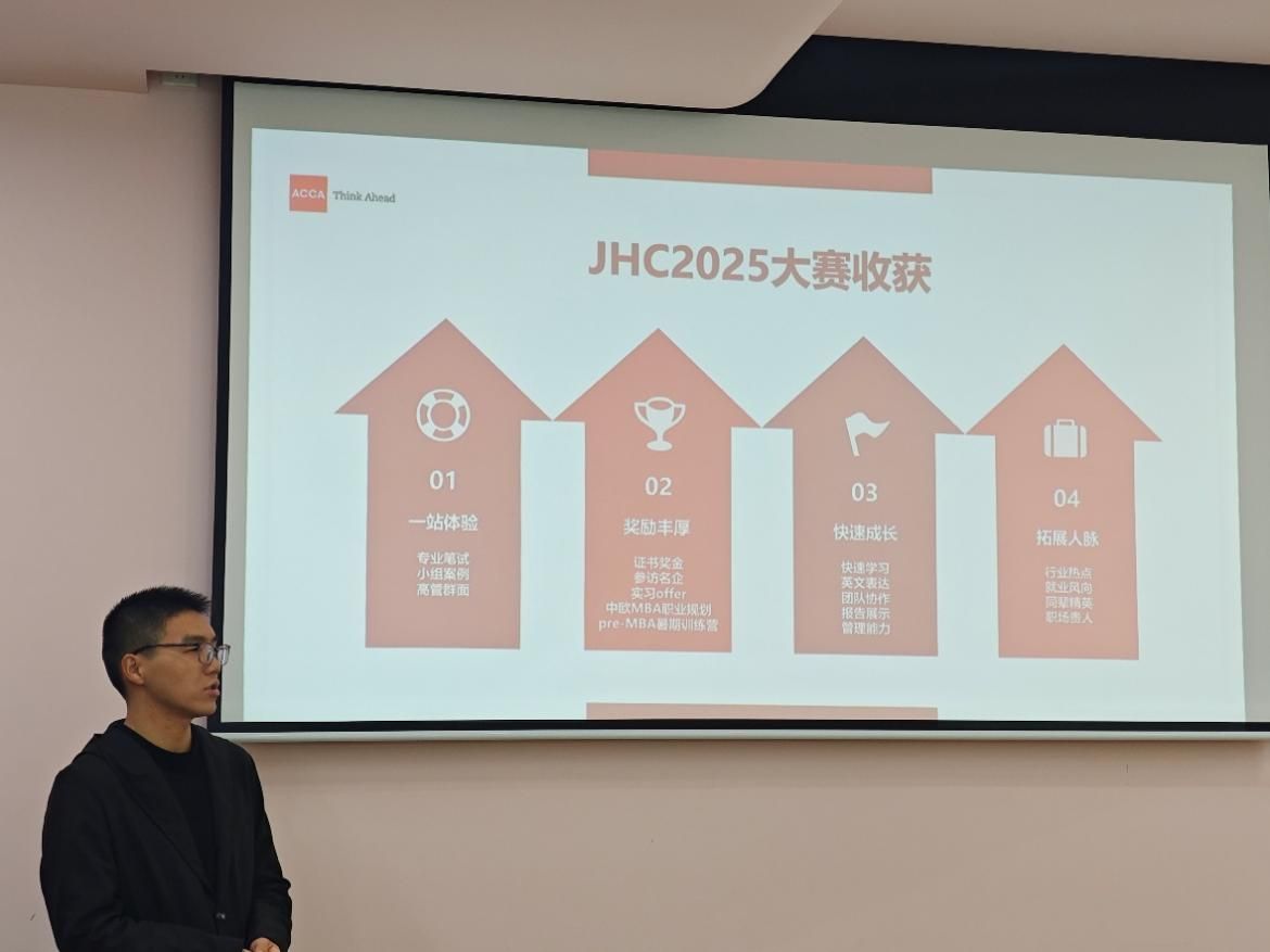 第22届JHC大赛也备受关注。该大赛为同学们提供了专业笔试、小组案例分析、高管群面的一站式体验。不仅奖励丰厚,有证书奖金、实习offer,还能参访名企、获得中欧MBA职业规划指导。通过大赛,同学们能在快速学习、英文表达、团队协作等方面得到锻炼,拓展人脉资源,了解行业热点和就业风向。德勤、毕马威等产学联动伙伴企业,会为参赛选手提供职业发展支持。