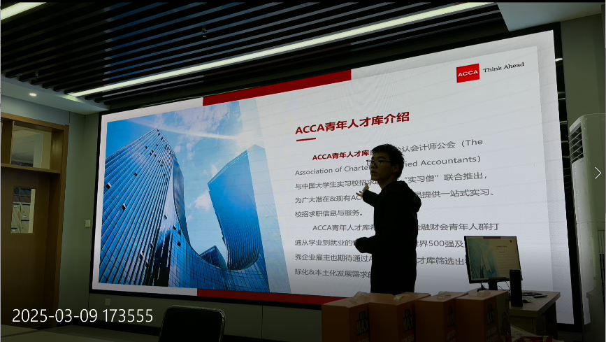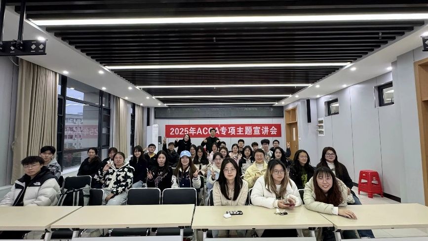 新闻网讯(学生通讯员 韩均杰 摄影 钟炜、张宇翔)2025年3月9日下午,ACCA主题宣讲会于文瀚北408隆重举行。ACCA方向班22级、23级学生全员到场,除此之外,本会特邀ACCA2301班辅导员陈楠老师、ACCA方向班21级学生两名。