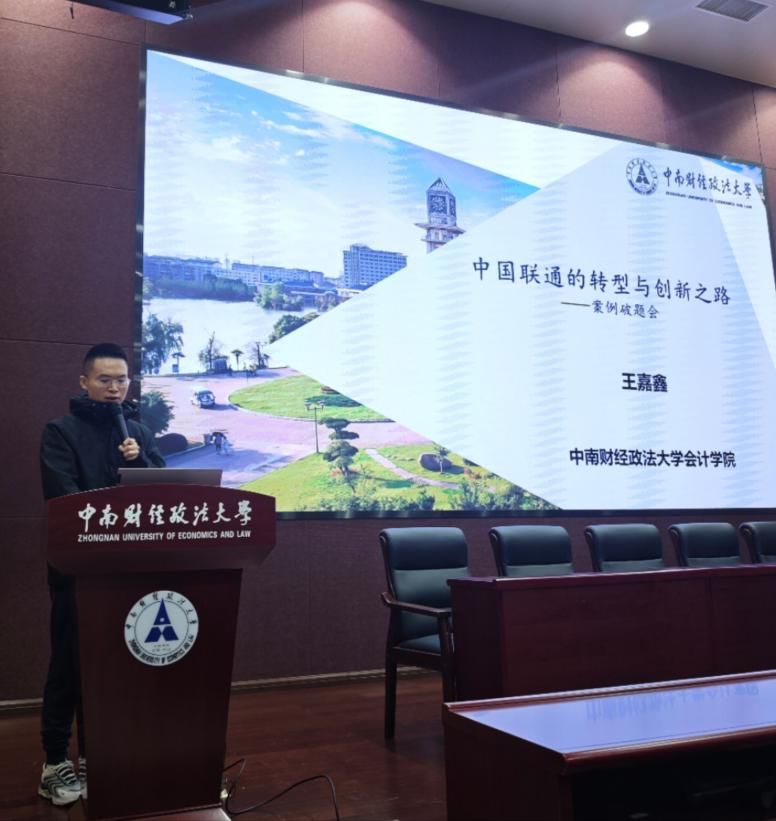 随后,学院专业学位研究生导师组组长王嘉鑫副教授对本次案例大赛初赛第一阶段的案例资料——中国联通案例材料进行了深度解析。他从四个方面进行了剖析:一是时代背景,包括宏观政策驱动、技术革命影响和产业融合趋势;二是企业背景,涵盖中国联通的混改背景、“联网通信+算网数智”双主业战略以及目标定位的转变;三是破题思路,详细阐述了从“战略选择”到“资源配置”再到“组织绩效”最后到“财务呈现”的全链条重构、可参考的理论逻辑和实践必要性;四是案例报告撰写规范性及案例报告的质量要求。王嘉鑫副教授的讲解深入浅出,为同学们提供了清晰的思路和路径。
