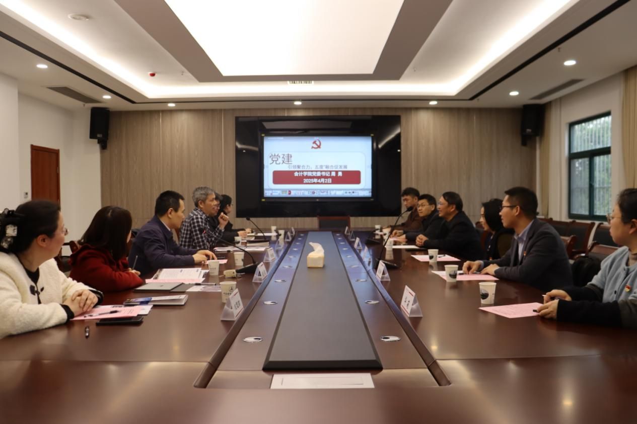 周勇以“党建引领聚合力,‘五度’融合促发展”为题,从强化党建铸魂,持续提升思想引领热度;强化党建领航,持续提升政治引领高度;强化党建强基,持续提升组织引领力度;强化党建筑梦,持续提升价值引领深度;强化党建创新,持续提升质量引领发展等方面介绍了会计学院培育创建全国党建工作“标杆院系”的情况。
