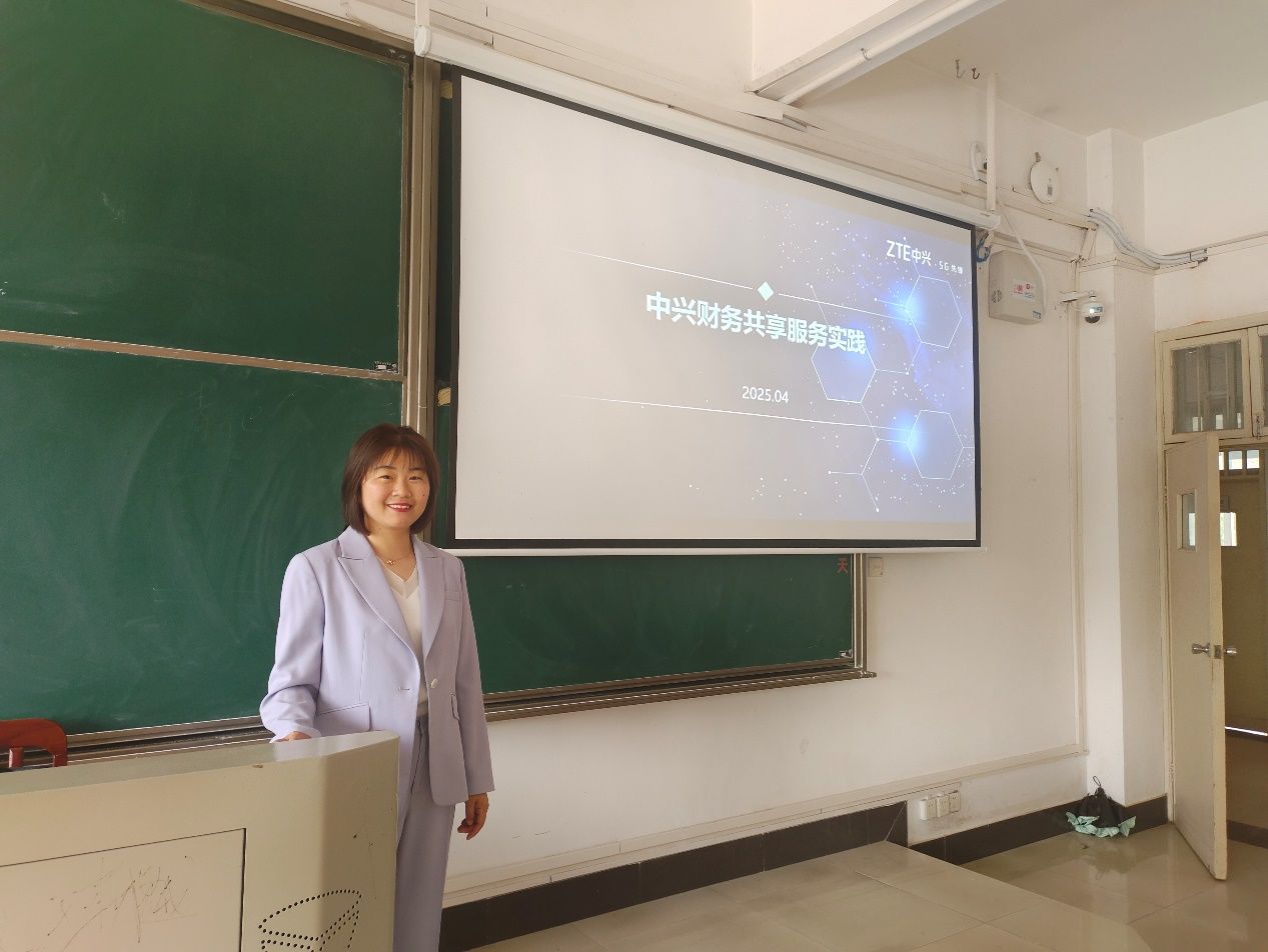 2025年4月25日上午,中兴通讯财务云郑芳部长应邀在文添楼209为我院2024级会计专硕讲授《财会审前沿问题研究》课程。本次课程由专硕导师组组长季华副教授主持,讲授主题为“中兴通讯财务共享服务实践”。