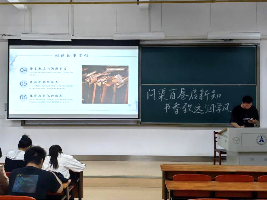 活动伊始,团支书彭晨皓同学向全体支部成员介绍了阅读的重要性。他指出,阅读不仅能提升语言表达与沟通能力,还能为精神世界提供滋养,促进社会进步与文化传承。在彭晨皓同学的引导下,全体支部成员对阅读的意义有了更深刻的理解,现场气氛热烈,大家纷纷点头表示认同。