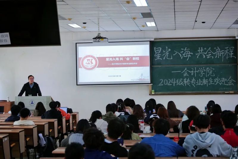 2025年4月3日,会计学院于文泽楼303举办2024级转专业新生欢迎会。活动以“星光入海 共‘会’新程”为主题,通过体系化指导、多维度交流,助力新生实现专业转换的平稳过渡。会计学院团委书记、2024级本科生辅导员赵达骋,辅导员孙紫微,优秀学生代表朱乐乐、荣欣怡等出席活动,现场氛围温馨热烈。