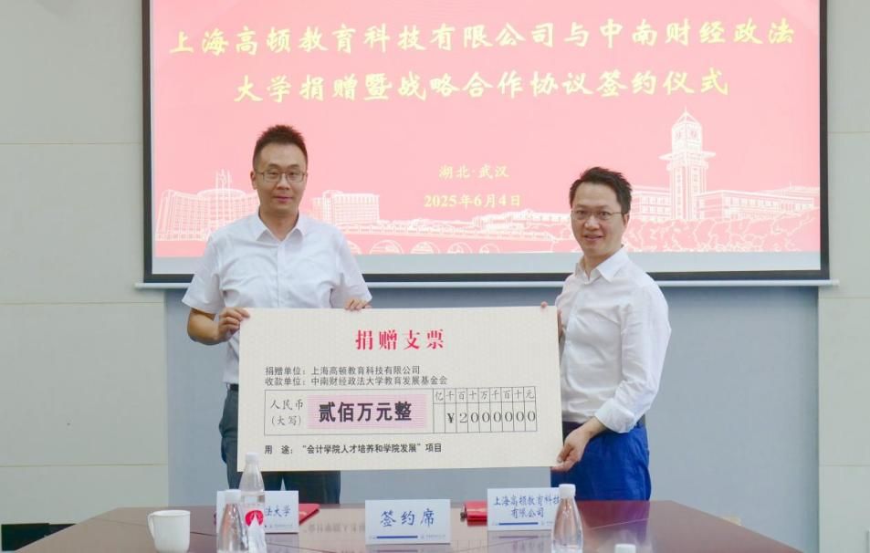 据悉,本次上海高顿教育科技有限公司向学校捐赠200万元将用于会计学院人才培养与学院发展专项基金,持续推动我校会计学科的高质量发展。高顿教育中原战区及武汉分公司负责人,学校会计学院、校友工作与社会合作部相关领导参会。