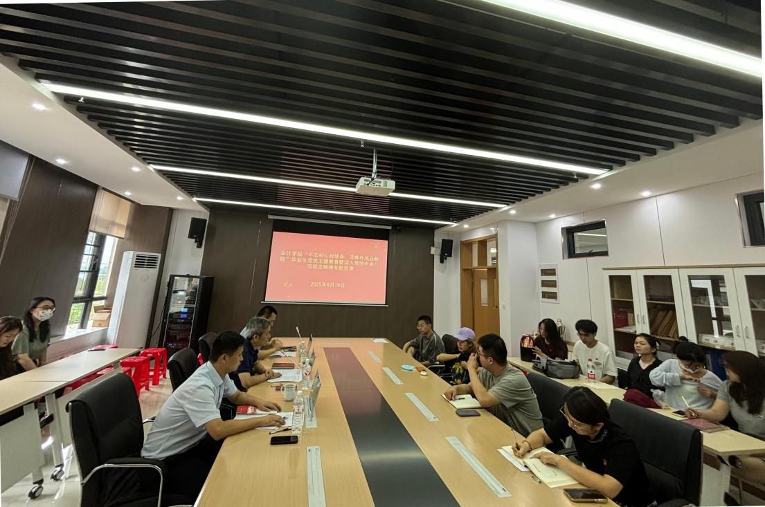 (通讯员 畅雅莉 樊惠燕)6月18日下午,会计学院在文瀚楼北402会议室开展“不忘初心担使命,淬炼作风启新程”毕业生党员主题教育暨深入贯彻中央八项规定精神专题党课。院党委书记周勇,院党委副书记、纪委书记兼行政副院长黄波、院党委副书记胡桂锬主讲,行政党支部党员代表、毕业生党员参加活动。