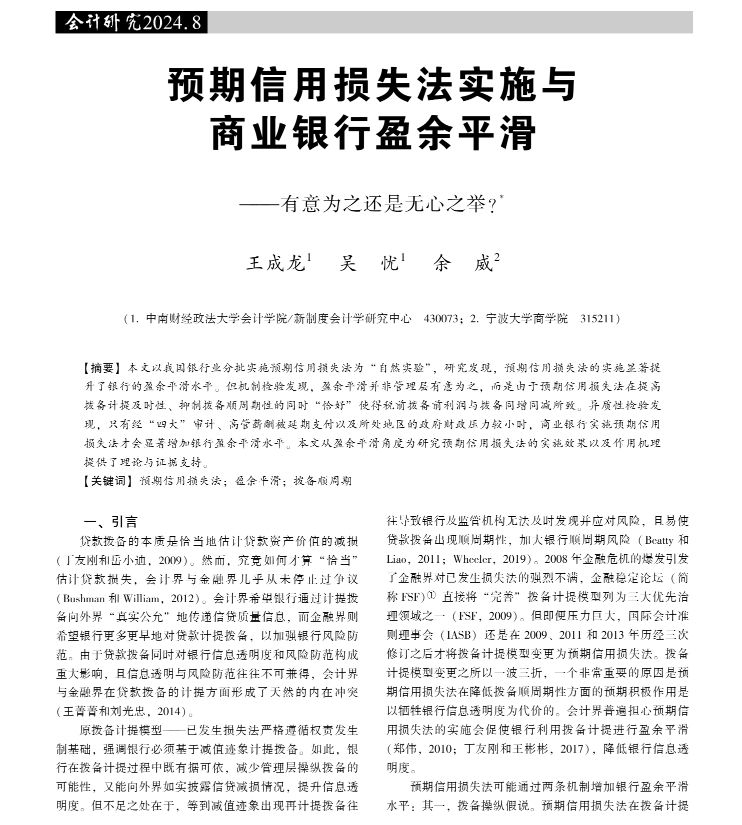 论文题目:预期信用损失法实施与商业银行盈余平滑——有意为之还是无心之举?