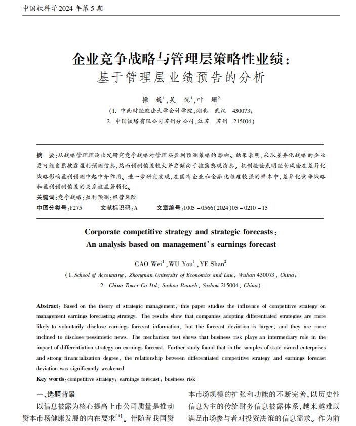 论文题目:企业竞争战略与管理层策略性业绩:基于管理层业绩预告的分析