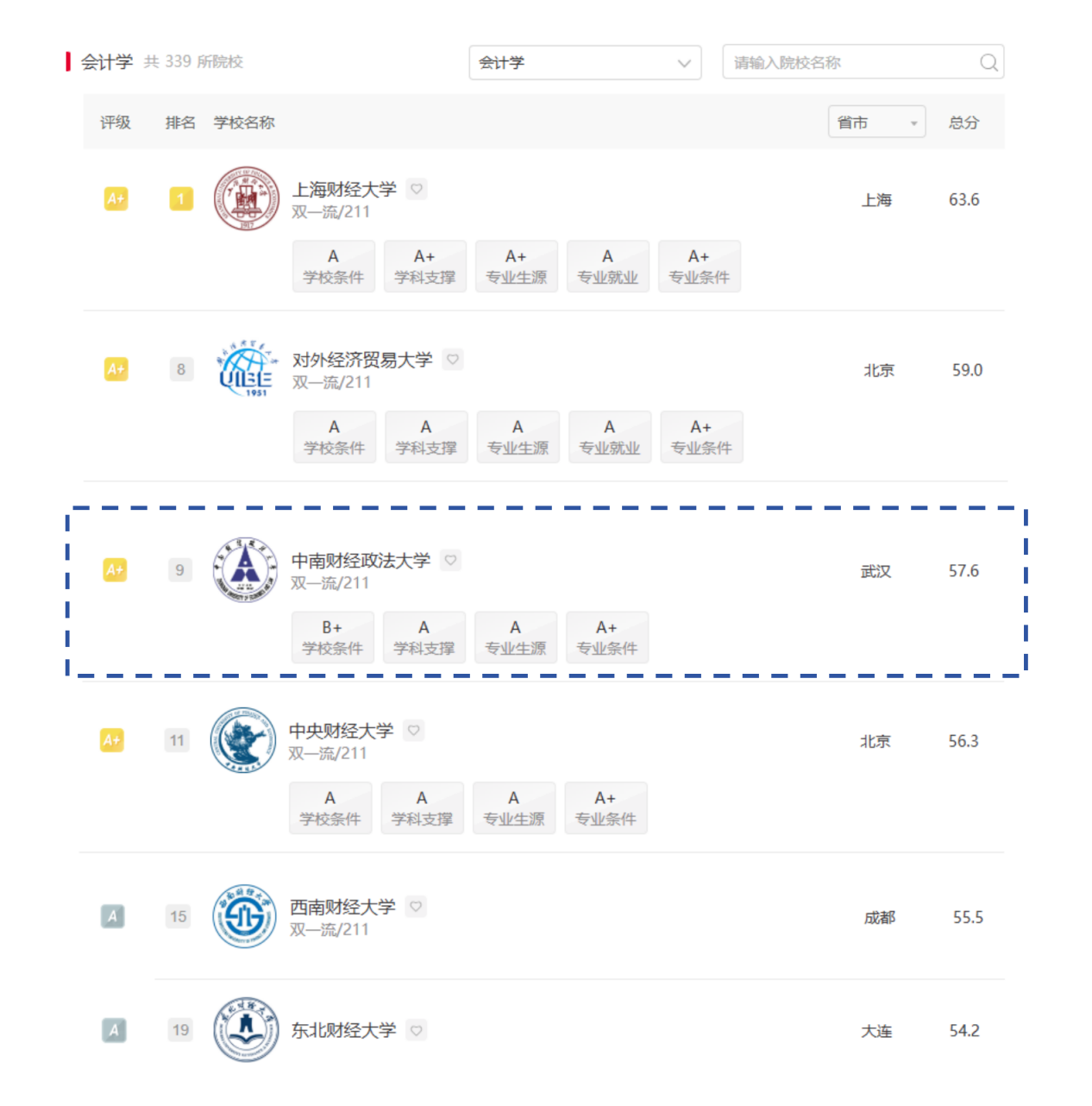 2025年软科中国“五财一贸”高校会计学专业排名(官方网址:https://www.shanghairanking.cn/rankings/bcmr/2025/120203K)