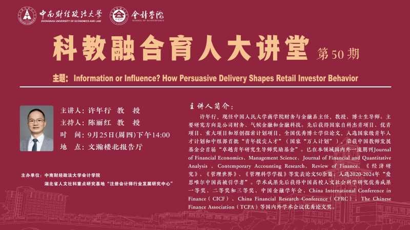 本次我们诚挚邀请中国人民大学商学院许年行教授作为主讲嘉宾,为我们带来第50期科教融合育人大讲堂。