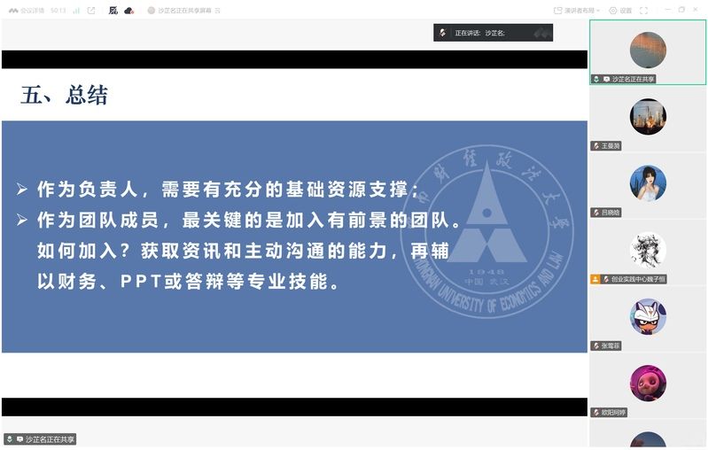 另一位重磅嘉宾——财智2201班林涵师姐则结合其在全国各大创赛中的实战经历,从赛事认知、选题策略、项目书撰写要点等方面展开讲解,并针对“如何平衡创赛与学业” 这一核心关切,分享了时间管理与目标规划的实用方法。此外,林涵师姐对有关项目选题、团队协作等问题提供了非常宝贵的建议,让师弟师妹们对创赛有了更立体的认知。