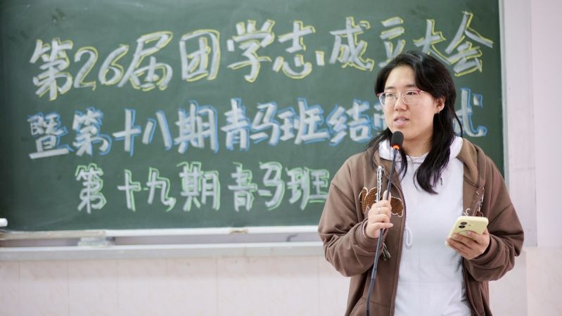 随后,第二十五届团学志优秀成员白曼曼以“成长三悟”为主题分享经验:一悟是本领锤炼,在组织策划中提升了统筹协调能力;二悟是友谊珍贵,在并肩奋斗中收获了志同道合的伙伴;三悟是方向明晰,在服务师生中明确了人生的价值坐标。她鼓励新成员主动请教、大胆实践,在团学志这个“成长共同体”中实现个人与集体的共同发展。